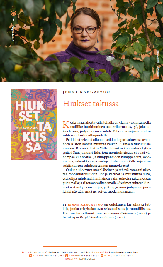 Kustantamo Teos julkaisee helmikuussa seuraavan romaanini Hiukset takussa.