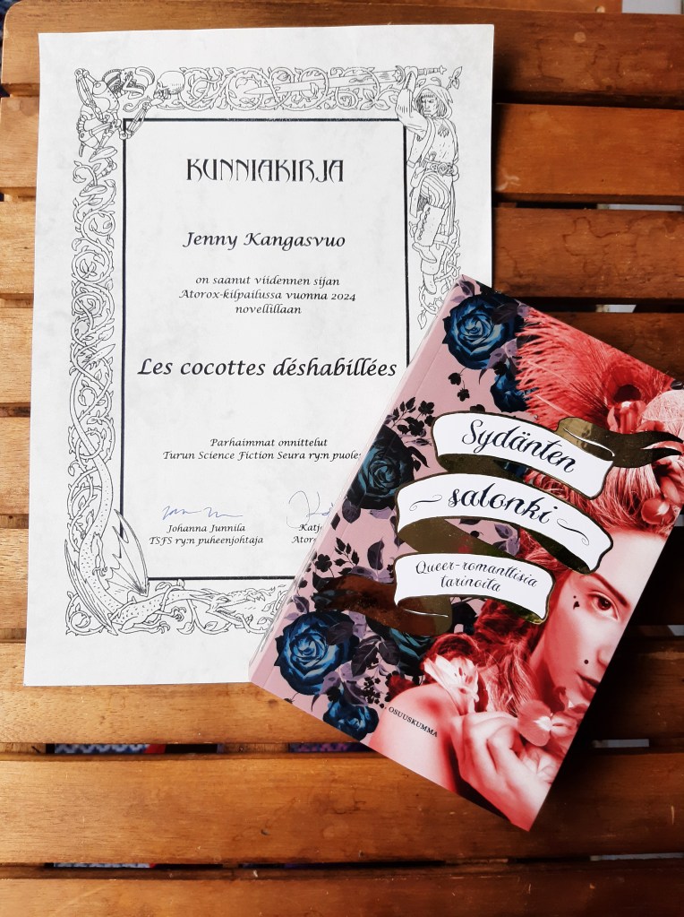 Novellini Les cocottes déshabillées palkittiin Atoroxissa kunniamaininnalla, eli kaikkien vuoden 2023 aikana ilmestyneiden fantasia- ja scifinovellien joukossa se saavutti äänestyksessä viitossijan!