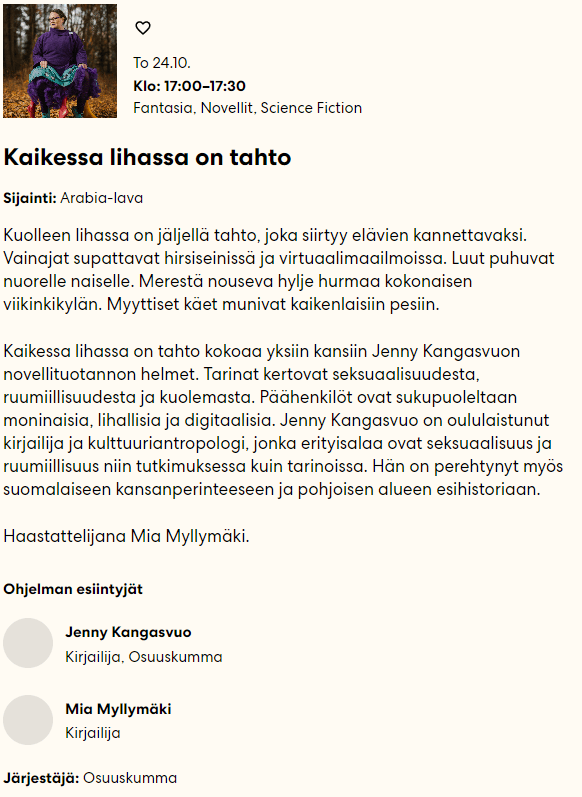 Esiinnyn Helsingin kirjamessuilla kahdessa ohjelmassa torstaina 24.10.2024: